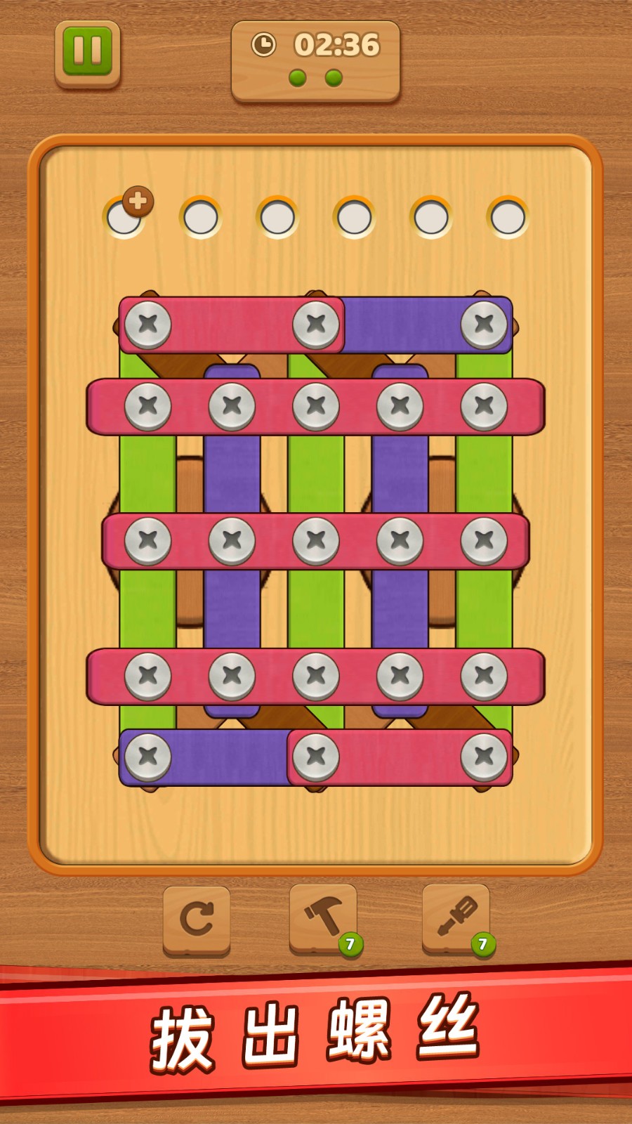 1、核心解谜功能要求玩家分析螺丝间的力学关联,找出基础支撑点并优先拆除。错误顺序可能导致结构卡死,需要重置关卡或使用提示道具。