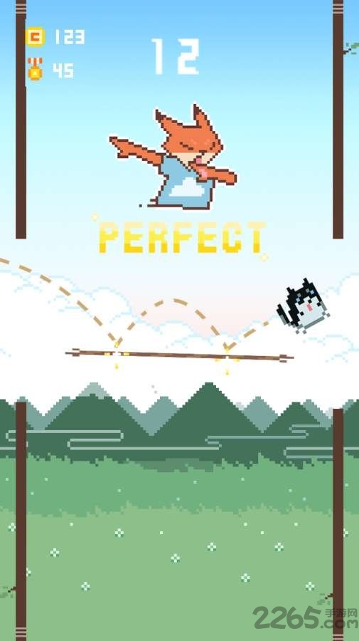 发现如果在线上弹了多次过关,还会飞出来一直逗比狐狸,而且还会一下子加3分~