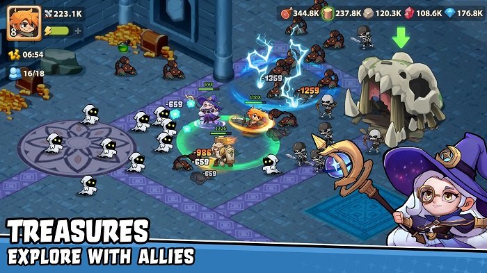 1、选择不同的英雄,每个英雄都有丰富的技能和更多炫酷的装备都能选择,自由的挑战更多的怪物