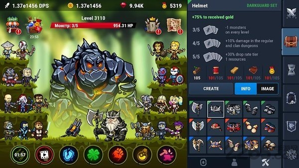 收集水晶、探索新物品并强化你的放置英雄。各式各样的头盔、斧子、手套等装备应有尽有。升级你的点击英雄与技能来提升伤害。给你的战士穿上胜利装备吧!