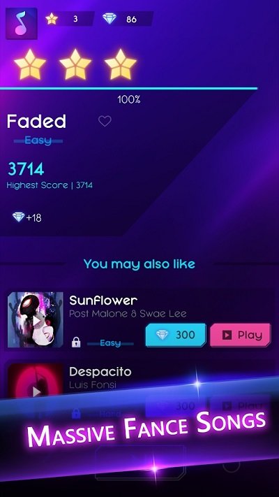 2、不同的级别,容易上手的操作,炫酷的游戏体验,独一无二的音乐之旅,渴望细腻十足;