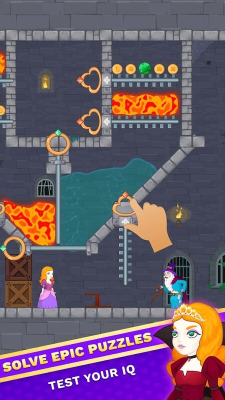 ☆将水倒入熔岩中,解除陷阱的束缚,拉动别针或将别针推回去,寻找宝藏,拯救公主以及更多有趣的机制!