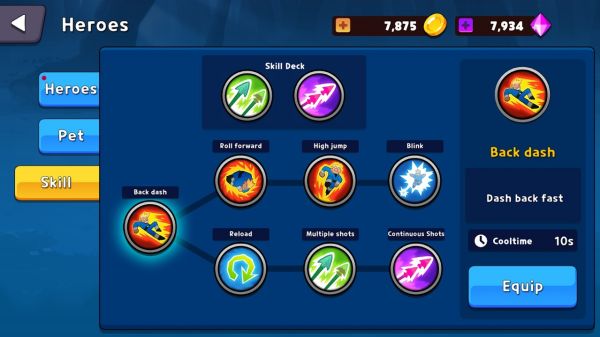 您可以与一只可爱的宠物一起参加战斗。此外,还有各种字符,弓,箭袋和符文。
