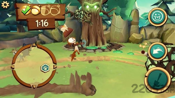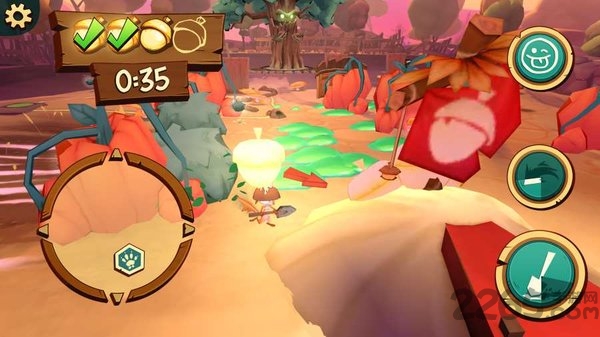 松鼠玩家需要躲避大树的攻击,并且,偷取坚果