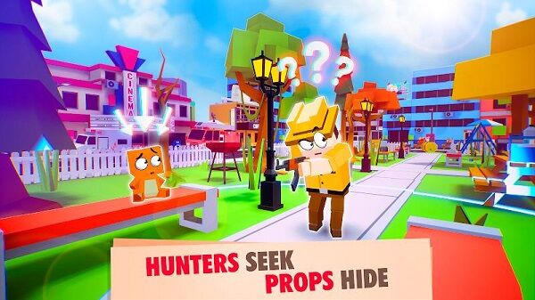 在每张地图上,都有许多独特的对象:从小甜甜圈和水果到小物品,例如盒子和桶。道具任务是隐藏其他对象,以使猎人找不到您。能够塑造任何物体并采用其物理特性的道具。配备特殊武器的玩家(猎人)必须在限定时间内找到所有其他物品中隐藏的玩家。