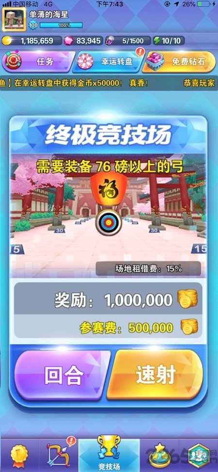 众多地图,3D场景,画面精美,还原最真实极致的射箭体验;