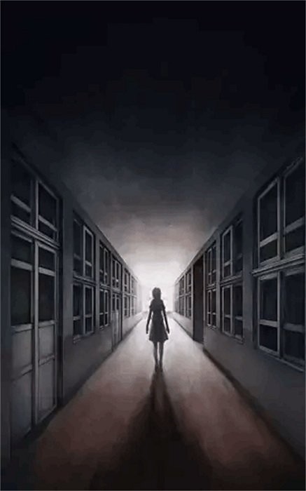 恐怖题材游戏,迷宫一样的黑色背景学校走廊