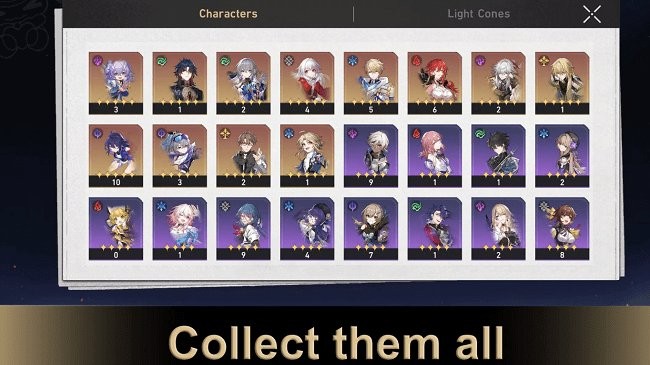 3、丰富的收藏:包含《崩坏:星穹铁道》中的许多角色,让玩家快速建立自己的梦之队。