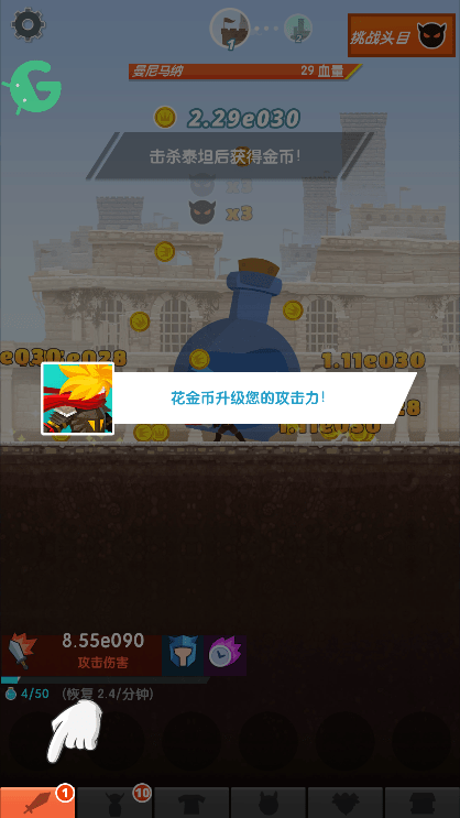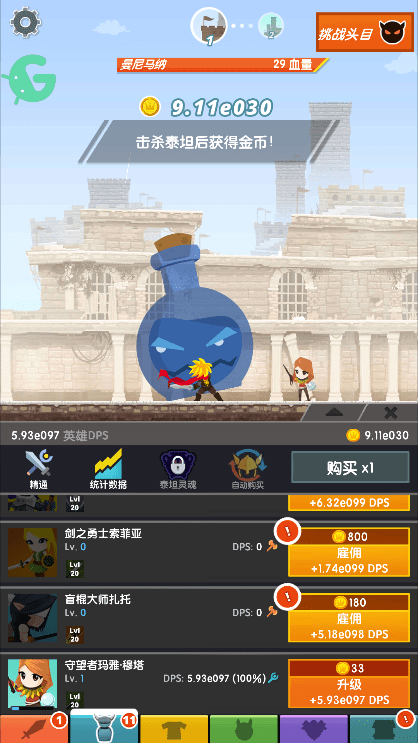 点杀泰坦2单机破解版是放置类手游,点杀泰坦2安卓版除了继承了前作的玩法之外还加了很多新东西,每日签到奖励,武器装备,宠物,还有了技能树。点杀泰坦2最新版相比前作的超小声的bgm这次终于回复正常了,随便玩了一下,升级闯关很容易。