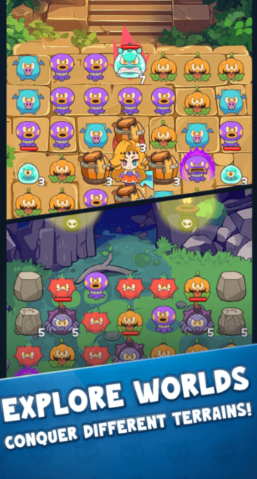 在这款匹配3rpg益智游戏中,以风格击倒您的敌人,并探索最适合您策略的多种武器组合。