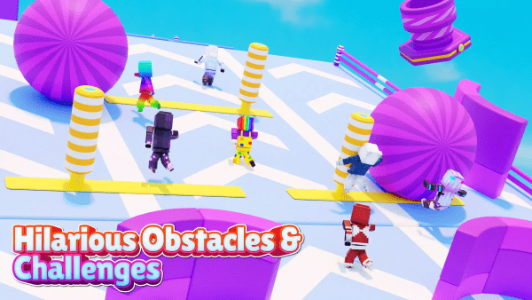 –在一系列混乱的迷你游戏中与其他15名玩家实时竞争。躲避挥舞的锤子,跳过移动平台,在疯狂的障碍中生存下来,进入下一轮。