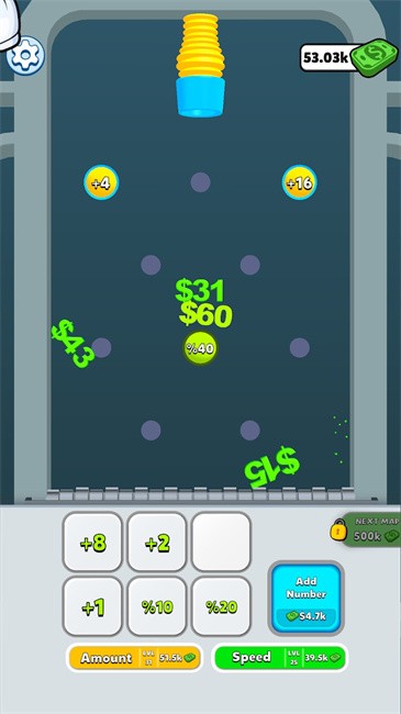 3.上方会随机掉落不同的金额,直至完成合并即可