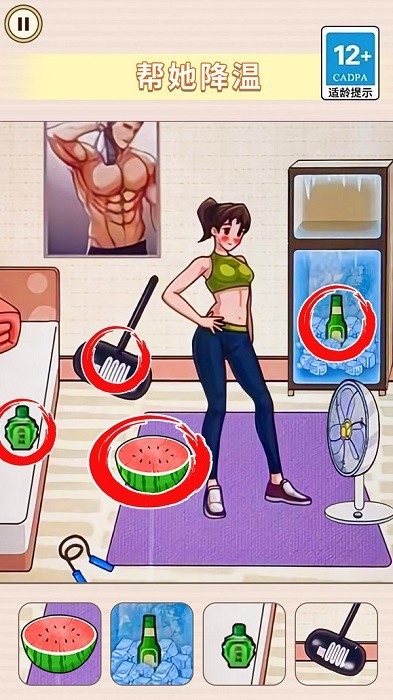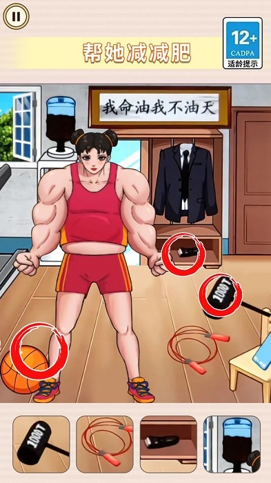 帮她减减肥是一个轻松找茬的休闲益智游戏,仔细观察场景中有哪些道具可以使用吧,游戏中你需要帮助女主角减肥,努力再努力,帮她变成万人迷