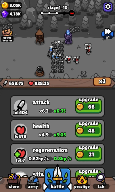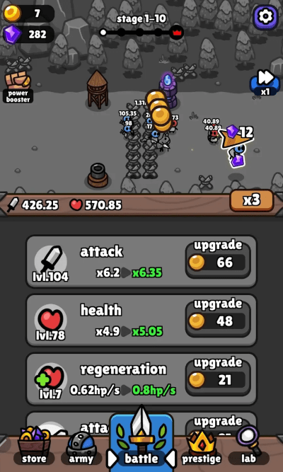 一开始进入游戏就是自动的战斗,然后获得金币提升属性。