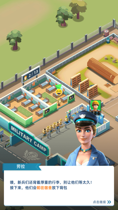 你将接受一个新兵军事训练营,先帮助等级,新兵自己去设施放置背包训练。
