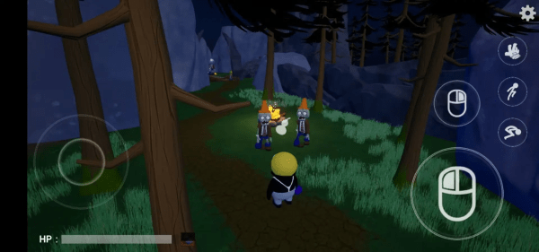 4、正式开始后左边的摇杆控制移动,右边的鼠标左键按钮是放置和互动,右键是取消。右键旁边的两个按钮是跳跃和翻滚。