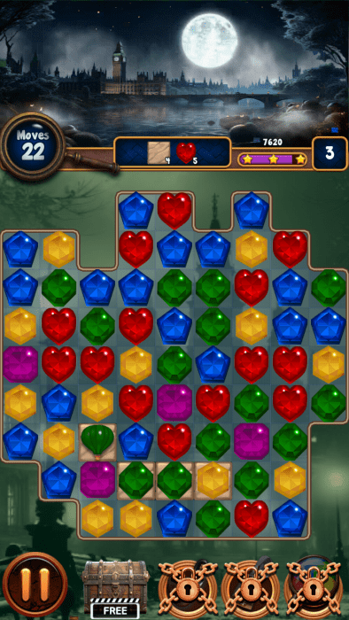 宝石秘密之谜游戏让你在这里轻松的消除宝石,带给你更有意思的益智小游戏,把那些相同的宝石全部的消除掉,同时这里有一些案件需要去调查,消除其中任务需求,更好的特效,完美的完成游戏的关卡挑战,一起来看看吧!