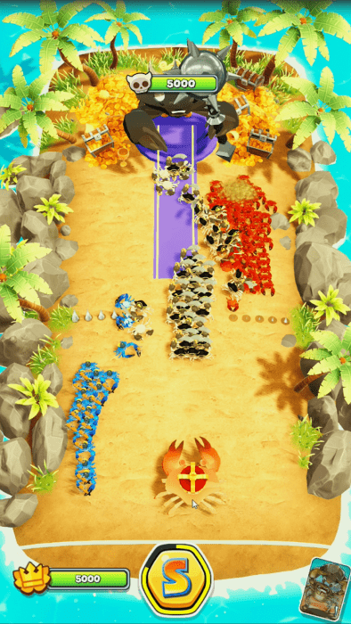 螃蟹之王入侵最新版是一个指挥一支螃蟹军团征服海洋。控制一只强大的帝王蟹,召唤无数螃蟹入侵充满宝藏和挑战的奇异岛屿。每一次胜利都能增强你的实力,扩充你的军队。策划你的入侵,智胜敌人,带领你的螃蟹走向荣耀!
