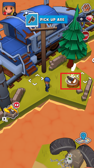 走下车后在前面领取你的斧子。