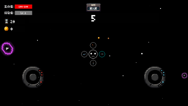 然后左边的轮盘是移动的,右边是可以滑动武器方位攻击。