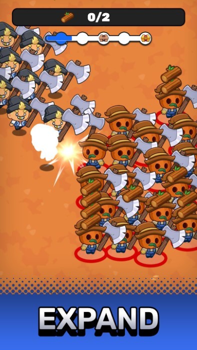 砍伐树木以产生新的部落成员,他们将加入您的战斗。从你的对手那里窃取资源,培养一支伐木工人大军!