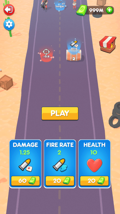 基于数学的提升系统 - 乘、除、加或减现金、弹药、生命值和士兵数量等统计数据,以最大限度地提高生存率。