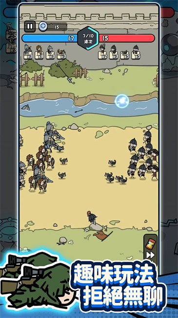 跨时代进化:随着你进入新的时代,小兵的升级与合成将受到时代科技的影响。石器时代的小兵可以进化成中世纪的骑士,再到未来的机甲战士,每一次跨时代的进化都意味着小兵的能力大幅提升。