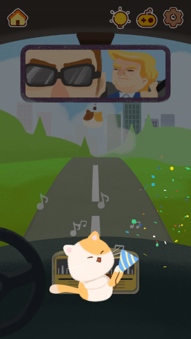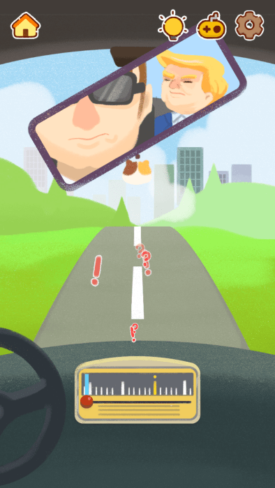 从游戏中找到需要操作的过程,把后视镜摆正,收音机调到黄色条那里。