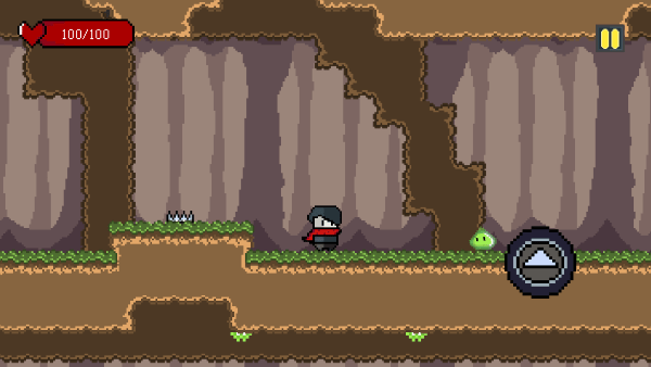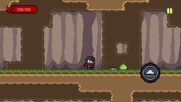 还有史莱姆也不能碰,碰一下就死,你可以跳跃起来踩它。