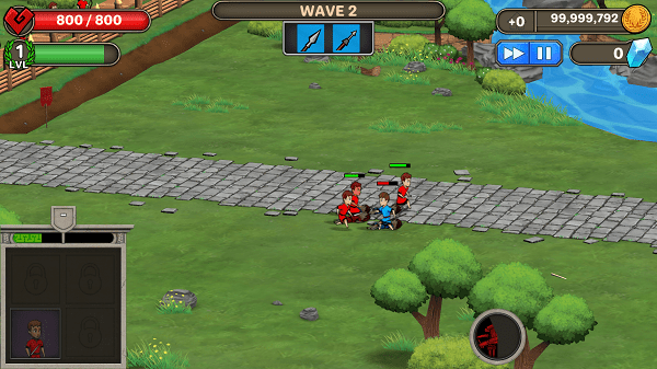 5、点击【下一波】按钮就能开始战斗,左下角可以出兵,下方还有技能按钮。