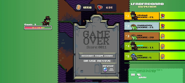 使用其他玩家可以看到的不同皮肤、服装和轨迹自定义您的青蛙! 收集奖励 每天在排行榜上排名前5名,收集奖励。