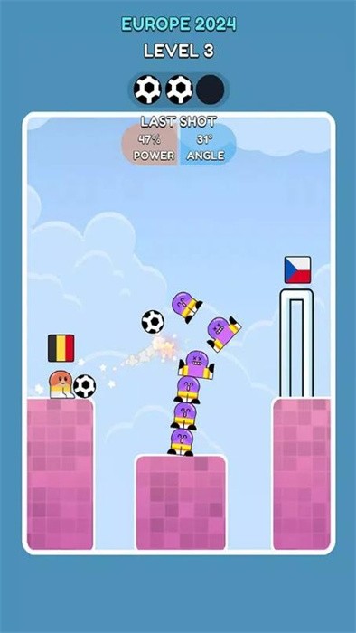 踢球得分安卓版采用弹射玩法打造的特色足球手游。你需要想办法来将足球踢进洞里,每个关卡所需要完成的挑战都是不相同的,随着关卡推进,游戏难度将会越来越高,看看你最终能获得多少积分。