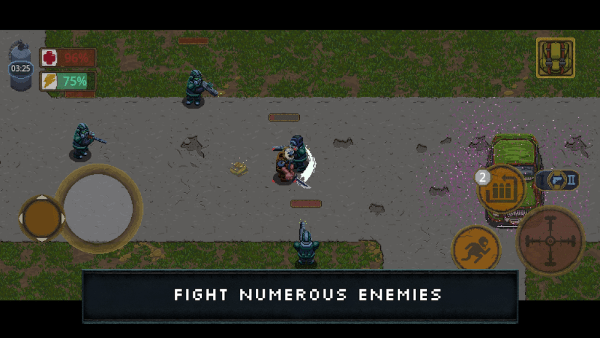 体验像素图形的复古魅力,将荒凉的后世界末日世界带入生活。从摇摇欲坠的建筑物到来势汹汹的敌人,每一个细节都经过精心设计,让您沉浸在这款 2D 游戏中。