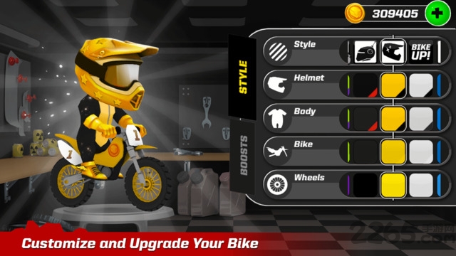 在《前进吧摩托》中你需要驾驶你的摩托越过各种不同的障碍,躲开尖刺、炸弹、碎玻璃等危险物品。路上还有许多的金币可以拾取,你可以通过金币来购买新的车辆。游戏支持自定义车辆,你可以根据自己的喜好来选择各种不同的升级路线。
