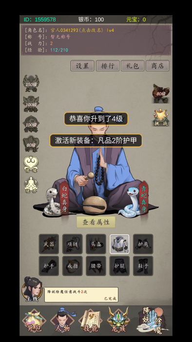 你可以看到一些简单的功能,装备都能看到,我们进入到降妖除魔中。