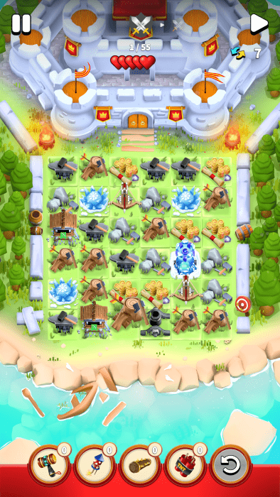 比赛领主塔防td最新版能让你踏上激动人心的冒险之旅,通过三消谜题建立自己的防线!在早上计划你的行动,匹配各种材料来创建塔楼和武器,以强化你的城堡。当夜幕降临时,击退试图突破你的据点的野龙,保护你的堡垒!