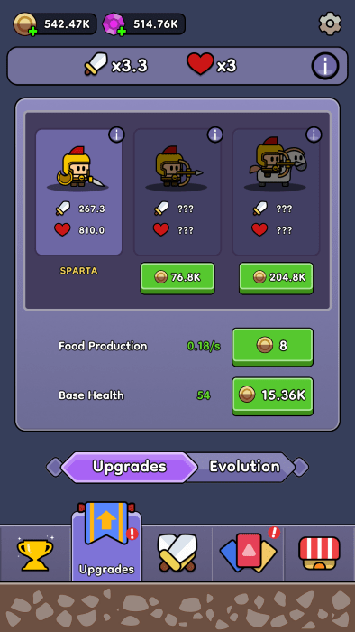 在石器时代,你将面对最基础的武器和士兵,需要通过不断发展解锁更强大的队伍和技能。在古埃及,你的士兵将配备更先进的武器,例如弓箭和盾牌。而到了斯巴达时代,你将率领最骁勇善战的战士,用疯狂的战术击败敌人。最终,在现代时代,你将操作坦克和大炮,用最先进的装备来统治战场!