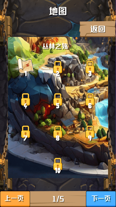 进入的关卡选择界面,从第一关开始游戏。