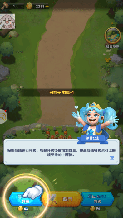 升级城墙等级,增加血量,还能站更多的英雄们。