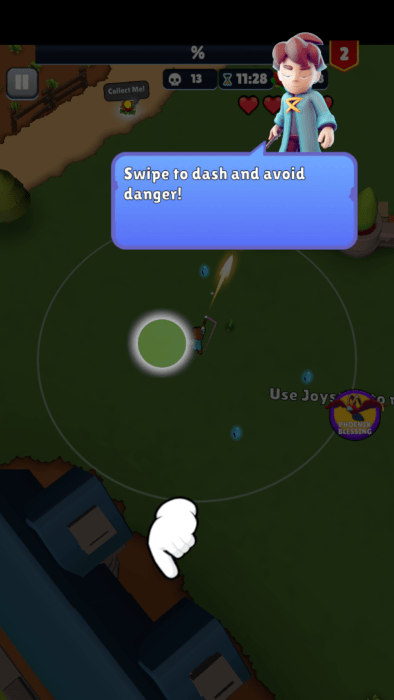 当敌人靠近可以滑动屏幕进行躲避一段距离。