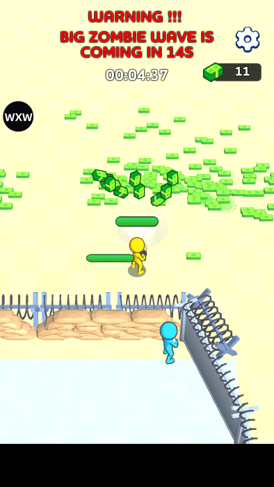 第 3 天:嘿,我不知道僵尸吃钱!当工作人员将它们炸开时,它们就暴发了。我现在可以收集所有的钱!