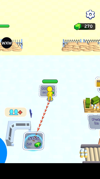 第 2 天:幸运的是,我可以发送信号从另一个基地寻求帮助,但我也花钱!在基地里,我有一台子弹生成机(太好了!),我只需要努力工作并将子弹交付给我的盟友,他们会保证我的安全!