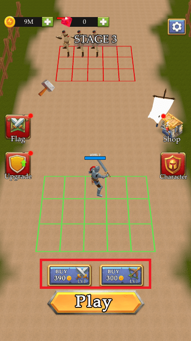 打开游戏后,你可以点击下面这里购买你的战士与弓箭手。