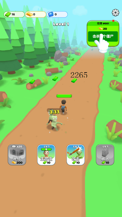 下载游戏后安装进入,角色会自动打僵尸的,只需要升级属性就可以了。