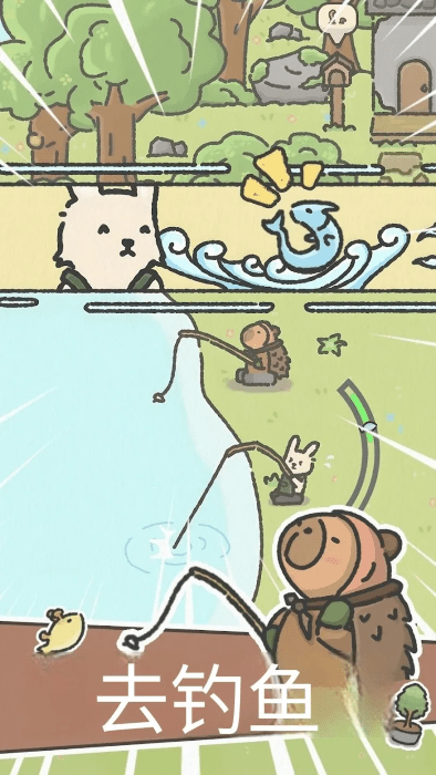 厌倦了源源不断的客人?休息一下,去户外钓鱼!各种稀有鱼类等待着您上钩和发现!点击挖出藏在土里的蚯蚓作为诱饵,然后在河边等待大鱼上钩。
