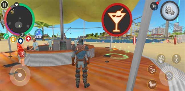 3、点击左上角的商店图标,你可以在这里购买各种物品,像摩托车这样的载具将会出现在你的身旁。