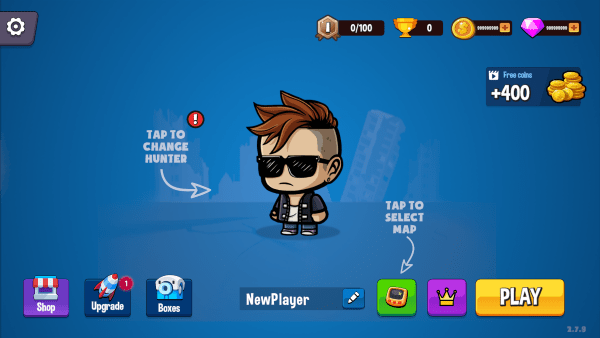 点击下载游戏后安装打开,你可以看到简洁的界面,点击人物就能切换角色形象,下面这个箭头指示切换地图。