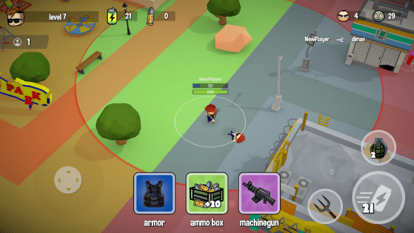 僵尸皇家最新版是一个简单的大逃杀io游戏,具有卡通僵尸启示录世界中的休闲机制。在世界末日城市、沙漠、森林、农场和军事基地中生存。在与僵尸和玩家的战斗中使用各种临时物品!斧头、干草叉、建筑工具、枪支、手榴弹、化学武器、防弹衣、飞鞋、快餐、急救箱等等!抓住任何你想要的东西,即使离线也可以尝试在僵尸和其他猎人中生存!