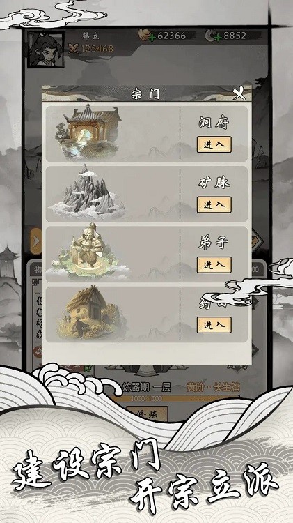 通过建设宗门,能够招纳属于自己的弟子,玩家自行开宗立派。