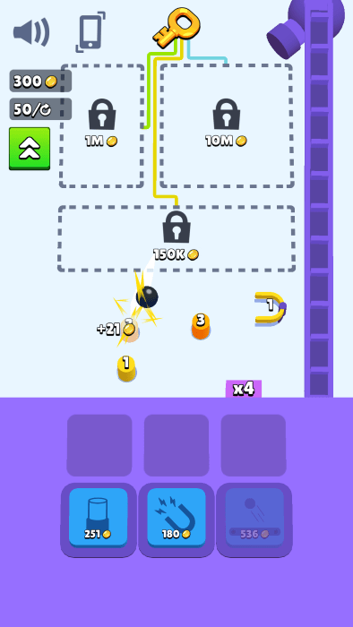 通过每次合并,您将赚到更多的钱并增加被动收入,从而增加财富并建立终极弹球帝国。